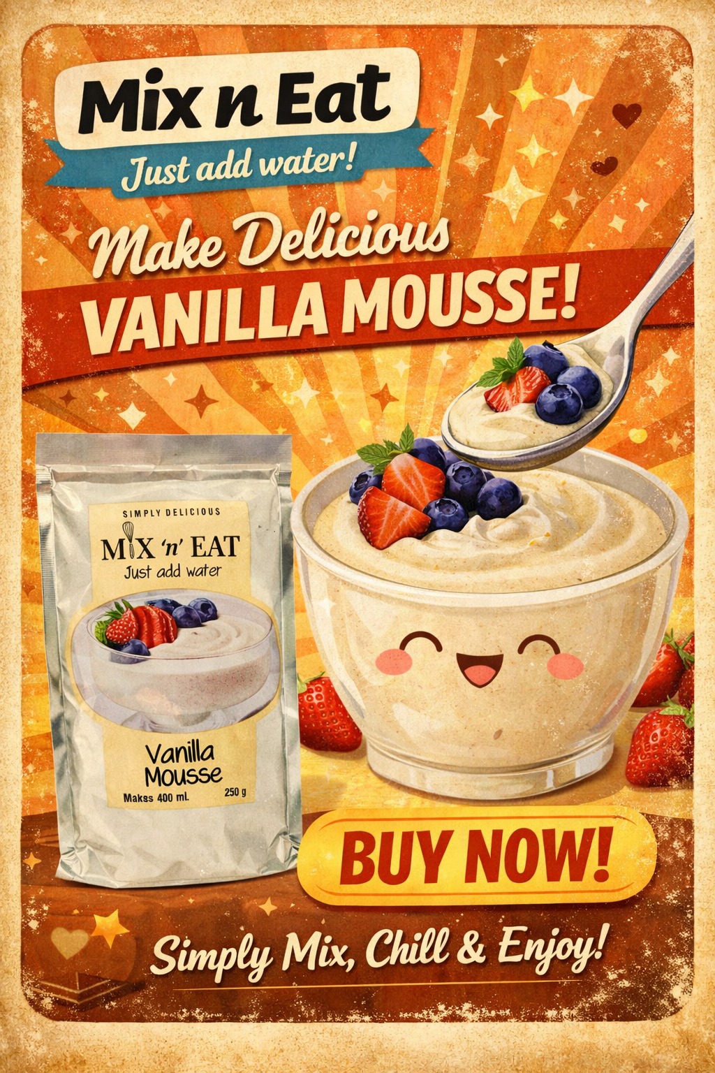 Add powder to mixer. Mix for 4–5 minutes on high speed, until mousse is light and fluffy.